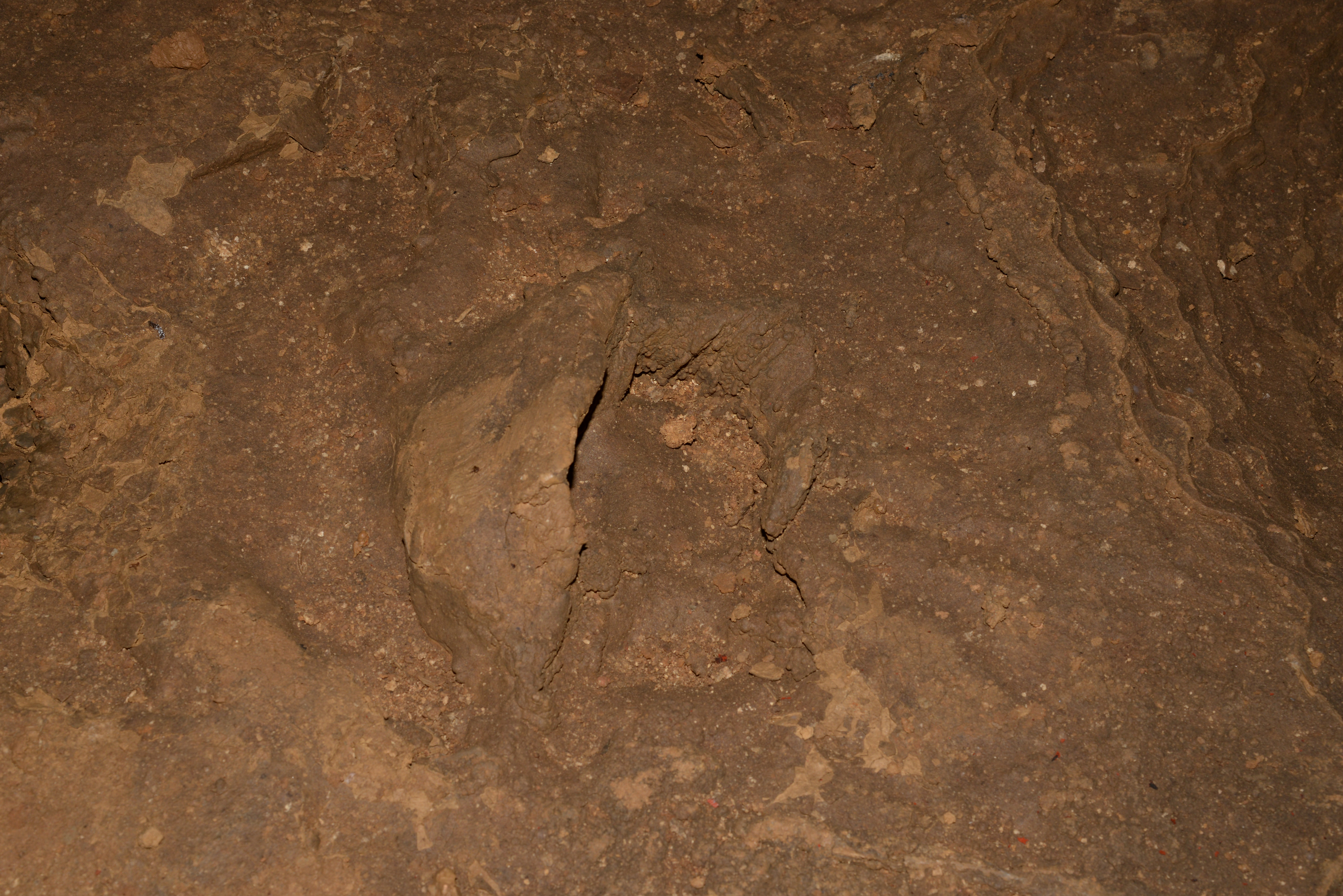 Subject S26, an infans I of unknown sex, got stuck in the mud with the right foot (S26-1), standing in a static position facing towards the Mesolithic entrance of the cave (Figs. 26 & 31). At this point in the southernmost part of sector D, some calcareous crusts have formed on the floor and it looks as if subject S26's foot had gone under such a crust and bumped the front of his toes. Furthermore, he did not carry any additional weights.